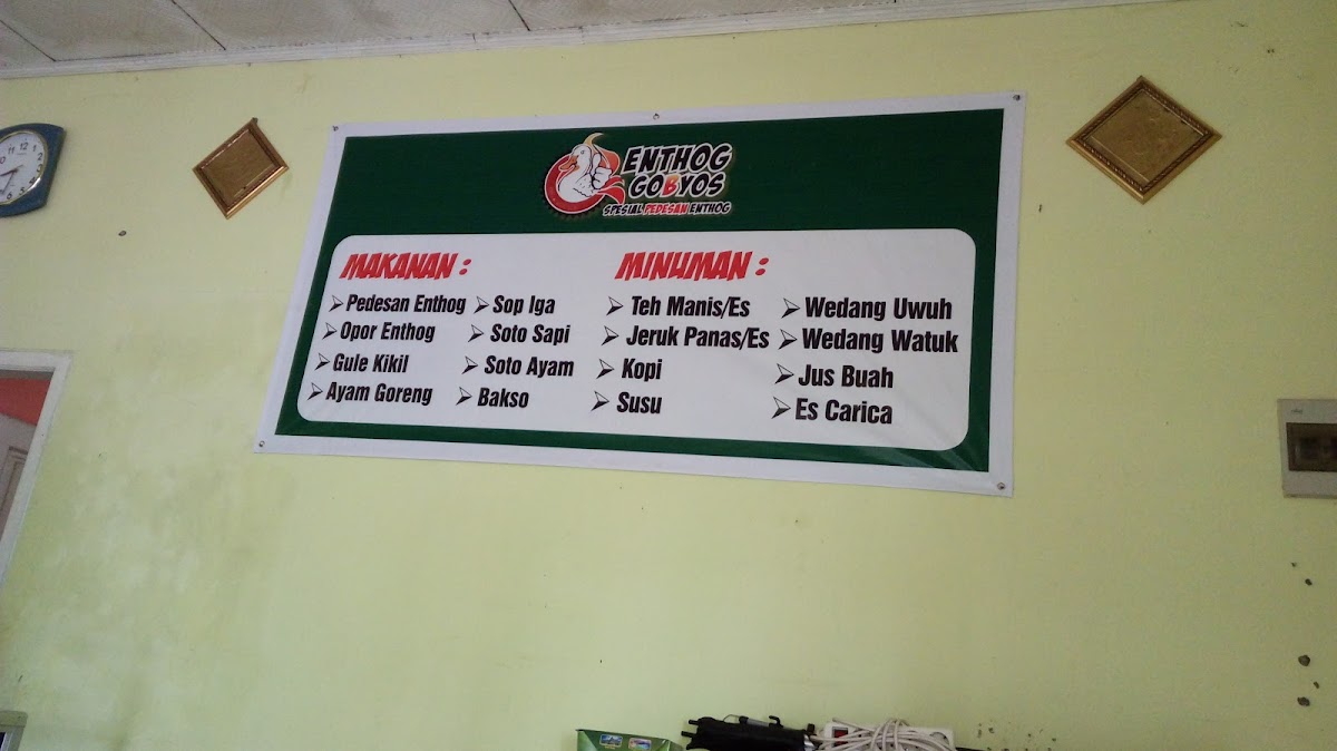 Introducing ENTHOG GOBYOS 1, a culinary gem nestled in the heart of Wonosobo, Indonesia. Located at Jl. Raya Wonosobo - Kertek No.Km 2, this restaurant offers an enticing menu that celebrates local flavors. Renowned for its delightful dishes, each plate showcases a fusion of tradition and innovation.